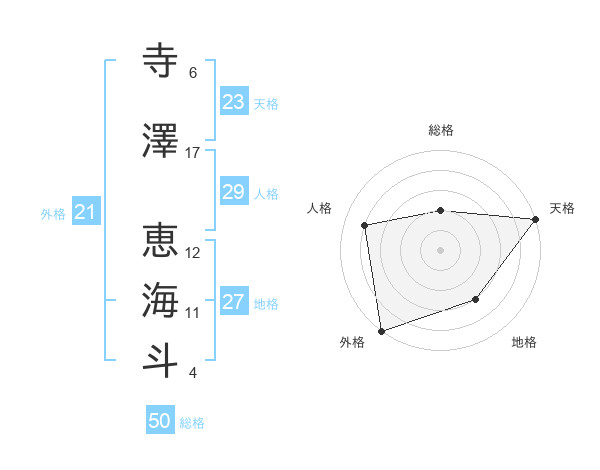 寺澤 恵海斗さんの外格は21画の5点!