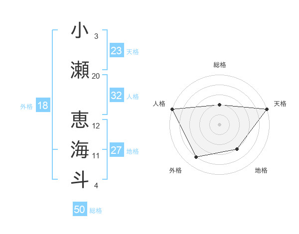 小瀬 恵海斗さんを姓名の画数から五運を鑑定
