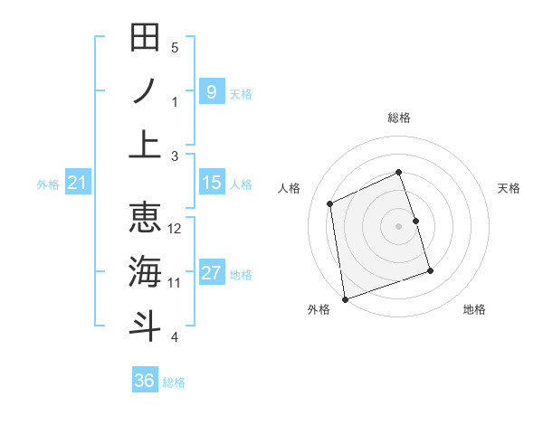 田ノ上 恵海斗さんを姓名の画数から五運を鑑定