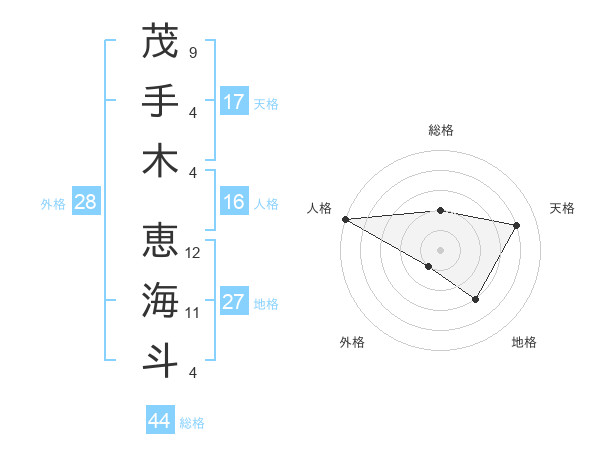 茂手木 恵海斗さんの人格は16画の5点!