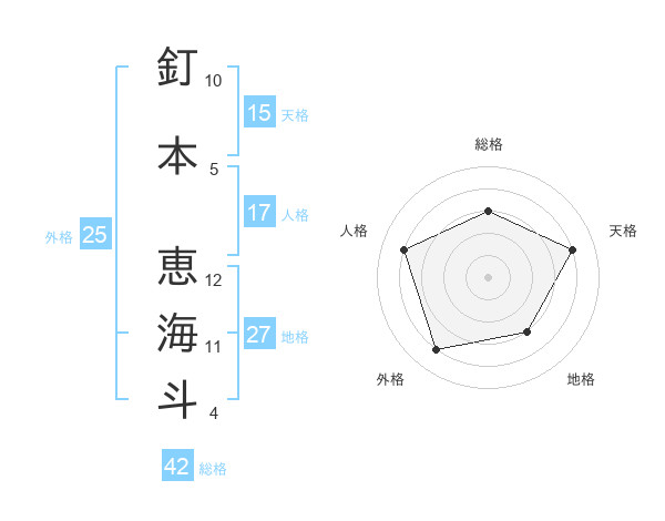 釘本 恵海斗さんを姓名の画数から五運を鑑定