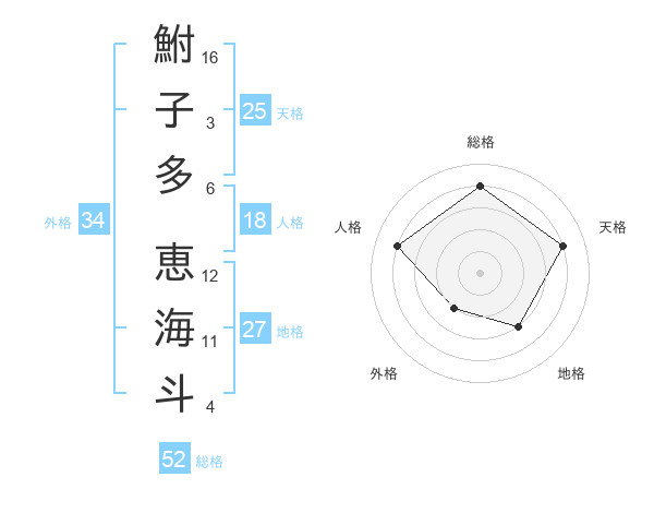 鮒子多 恵海斗さんを姓名の画数から五運を鑑定
