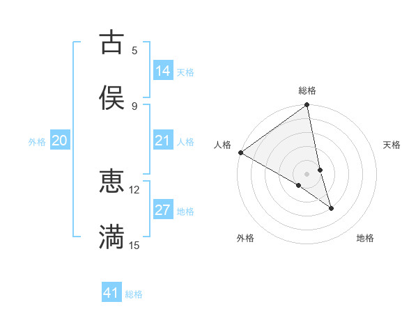 古俣 恵満さんの総格は41画の5点!