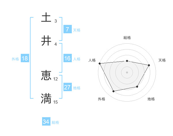 土井 恵満さんの総格は34画の2点!
