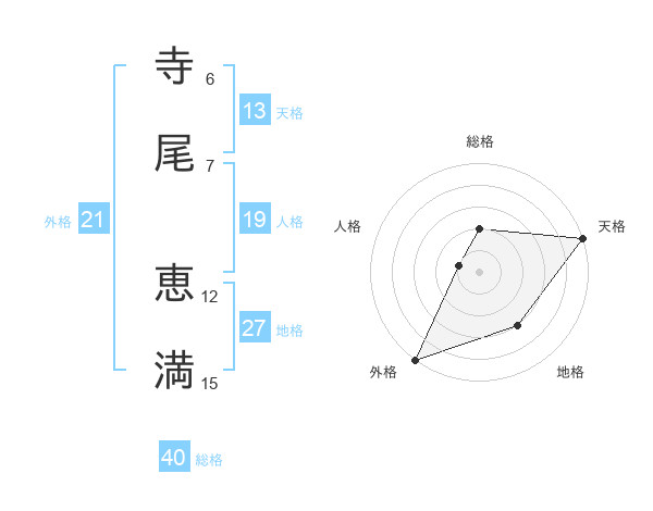 寺尾 恵満さんの外格は21画の5点!