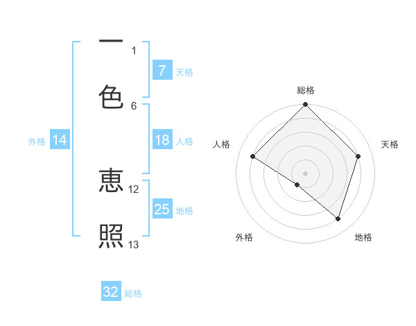 一色 恵照さんの総格は32画の5点!