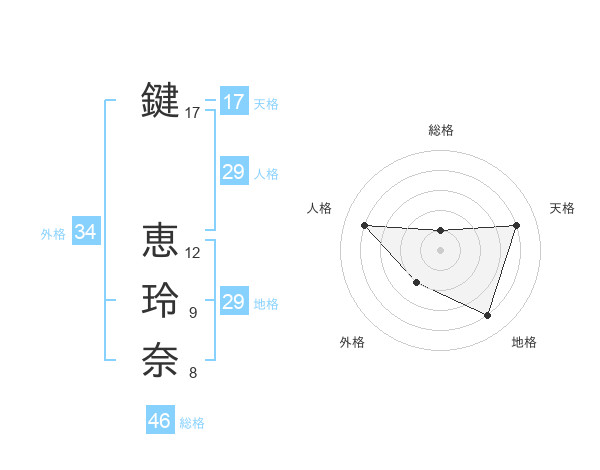 鍵 恵玲奈さんの天格は17画の4点!