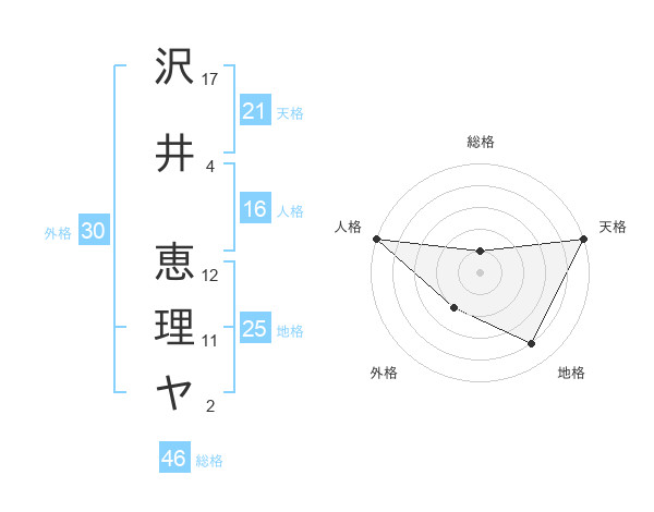 沢井 恵理ヤさんを姓名の画数から五運を鑑定