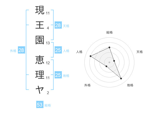 現王園 恵理ヤさんを姓名の画数から五運を鑑定