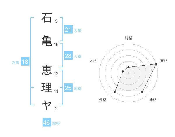 石亀 恵理ヤさんを姓名の画数から五運を鑑定