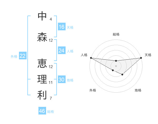 中森 恵理利さんを姓名の画数から五運を鑑定