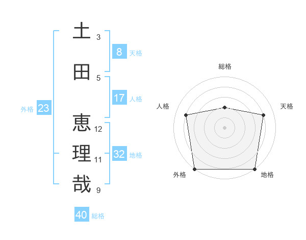 土田 恵理哉さんを姓名の画数から五運を鑑定