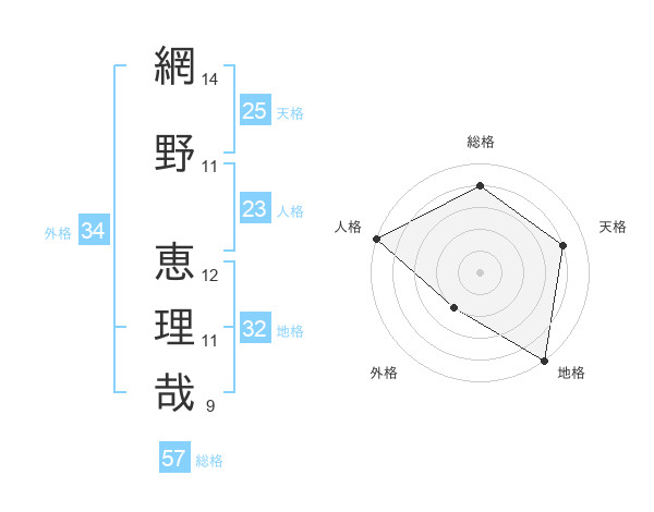 網野 恵理哉さんを姓名の画数から五運を鑑定