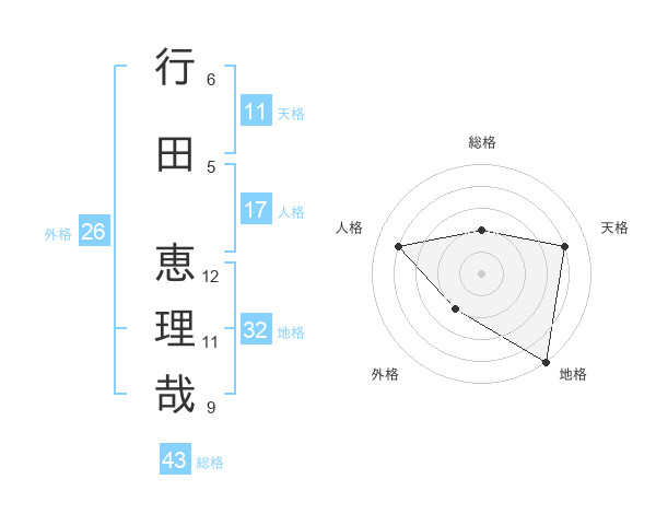 行田 恵理哉さんを姓名の画数から五運を鑑定