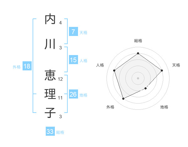 内川 恵理子さんを姓名の画数から五運を鑑定