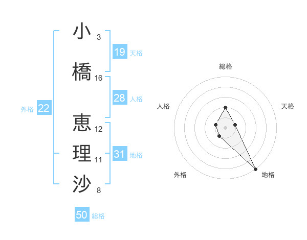 小橋 恵理沙さんを姓名の画数から五運を鑑定