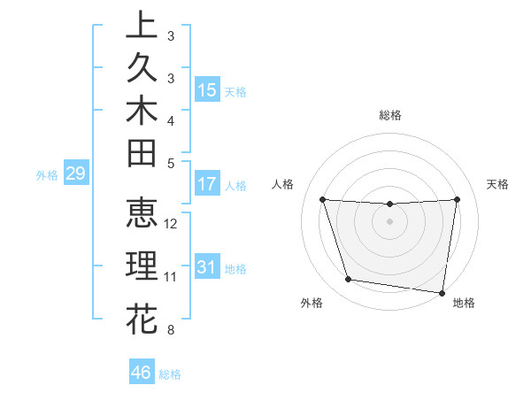 上久木田 恵理花さんを姓名の画数から五運を鑑定