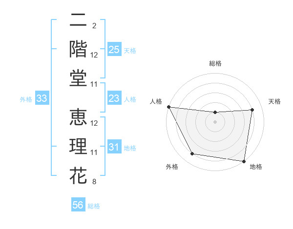 二階堂 恵理花さんの外格は33画の4点!