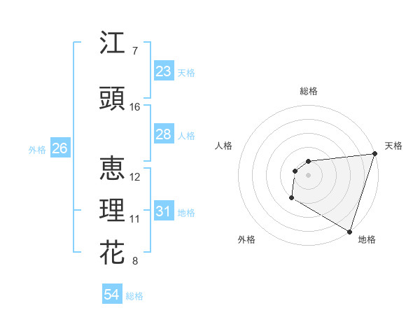 江頭 恵理花さんを姓名の画数から五運を鑑定