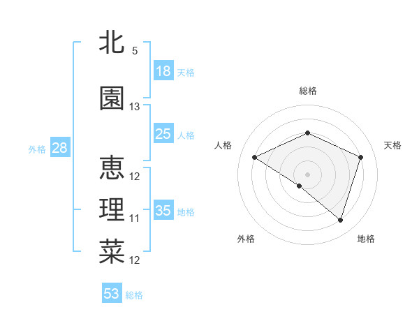 北園 恵理菜さんを姓名の画数から五運を鑑定