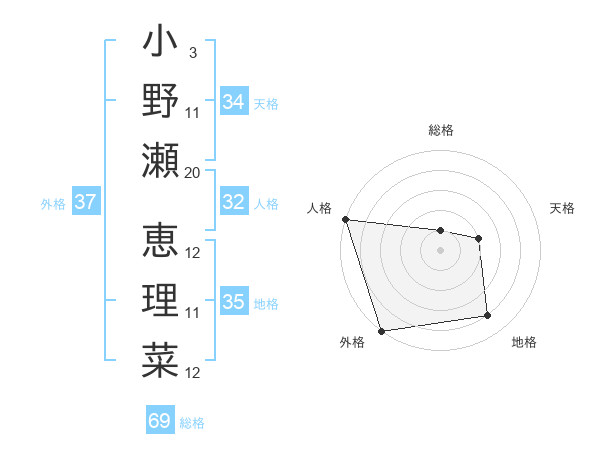 小野瀬 恵理菜さんの地格は35画の4点!
