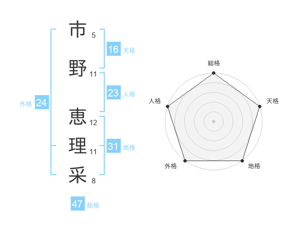 市野 恵理采さんを姓名の画数から五運を鑑定