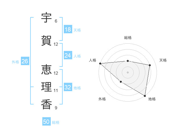 宇賀 恵理香さんを姓名の画数から五運を鑑定