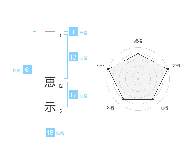 一 恵示さんの総格は18画の4点!