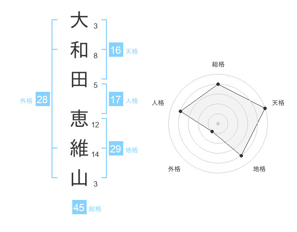 大和田 恵維山さんを姓名の画数から五運を鑑定