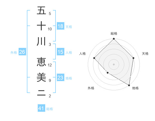 五十川 恵美ニさんを姓名の画数から五運を鑑定
