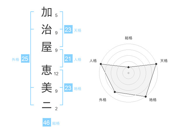 加治屋 恵美ニさんを姓名の画数から五運を鑑定