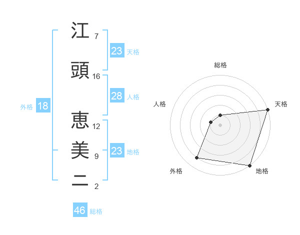 江頭 恵美ニさんの天格は23画の5点