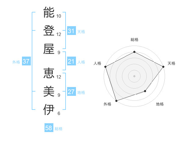 能登屋 恵美伊さんを姓名の画数から五運を鑑定