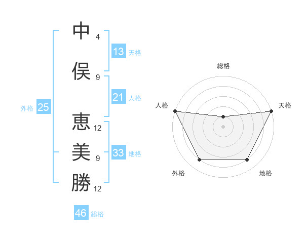 中俣 恵美勝さんを姓名の画数から五運を鑑定
