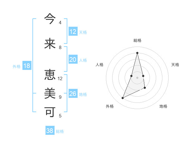 今来 恵美可さんを姓名の画数から五運を鑑定
