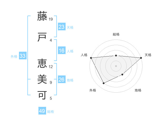 藤戸 恵美可さんの天格は23画の5点!