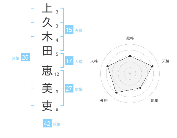 上久木田 恵美吏さんを姓名の画数から五運を鑑定