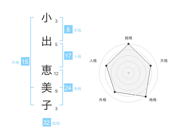小出 恵美子さんの総格は32画の5点!