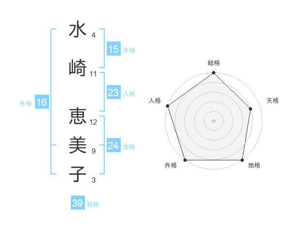 水崎 恵美子さんを姓名の画数から五運を鑑定