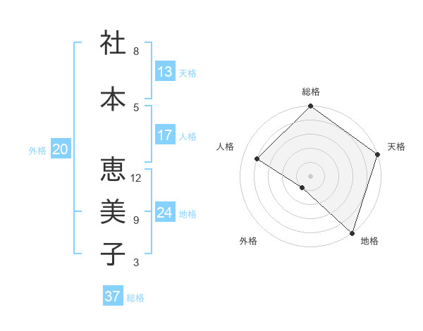 社本 恵美子さんを姓名の画数から五運を鑑定