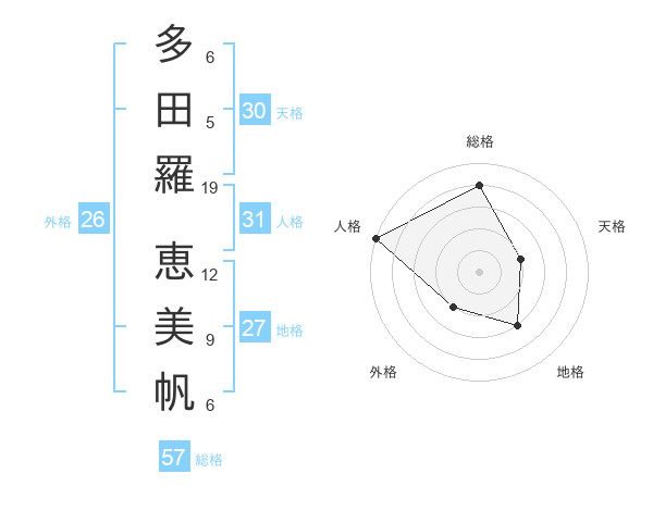 多田羅 恵美帆さんを姓名の画数から五運を鑑定