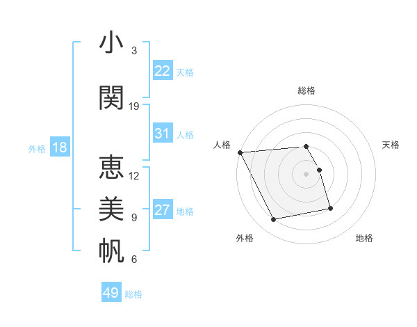 小関 恵美帆さんを姓名の画数から五運を鑑定