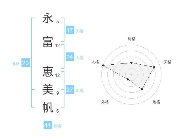 永富 恵美帆さんの天格は17画の4点!