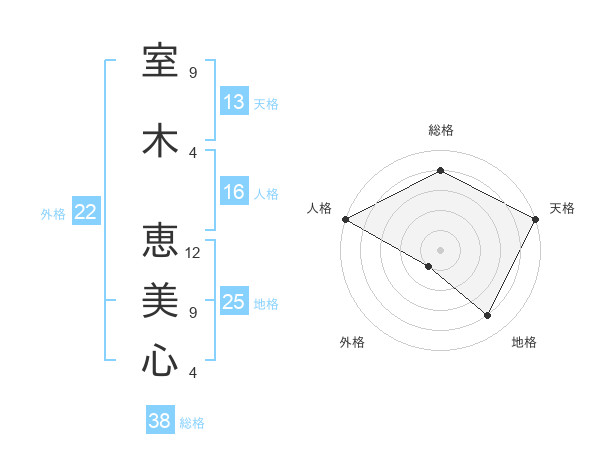 室木 恵美心さんの総格は38画の4点!