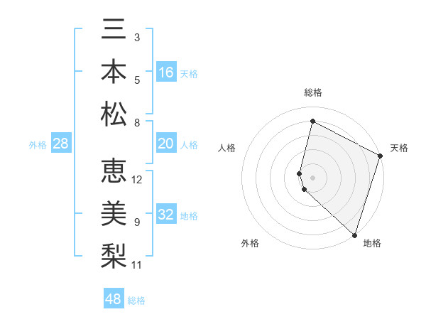 三本松 恵美梨さんを姓名の画数から五運を鑑定