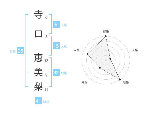 寺口 恵美梨さんを姓名の画数から五運を鑑定