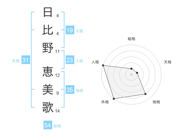 日比野 恵美歌さんの外格は31画の5点!