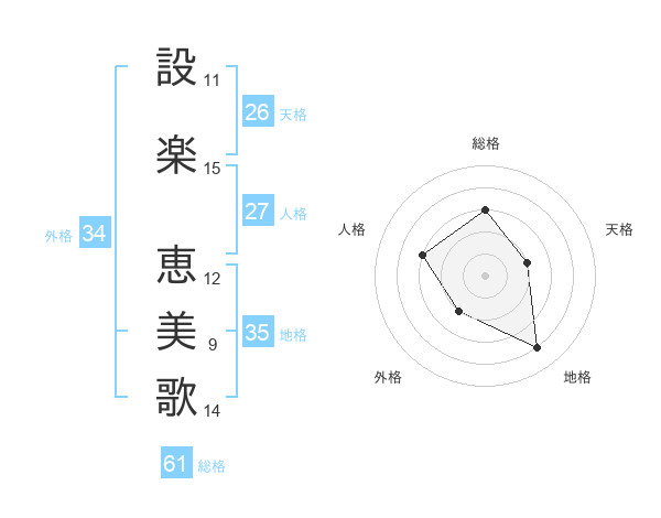 設楽 恵美歌さんの総格は61画の3点!