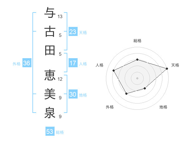 与古田 恵美泉さんを姓名の画数から五運を鑑定