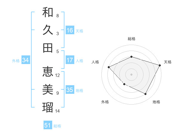 和久田 恵美瑠さんを姓名の画数から五運を鑑定